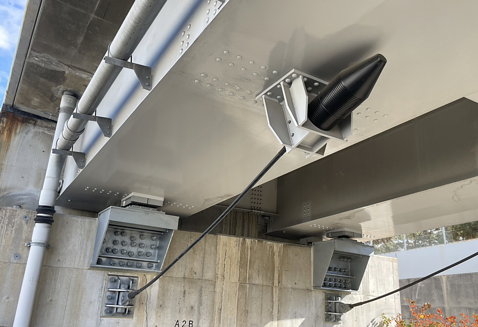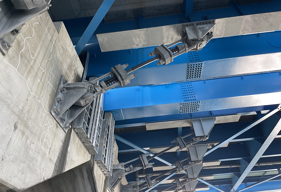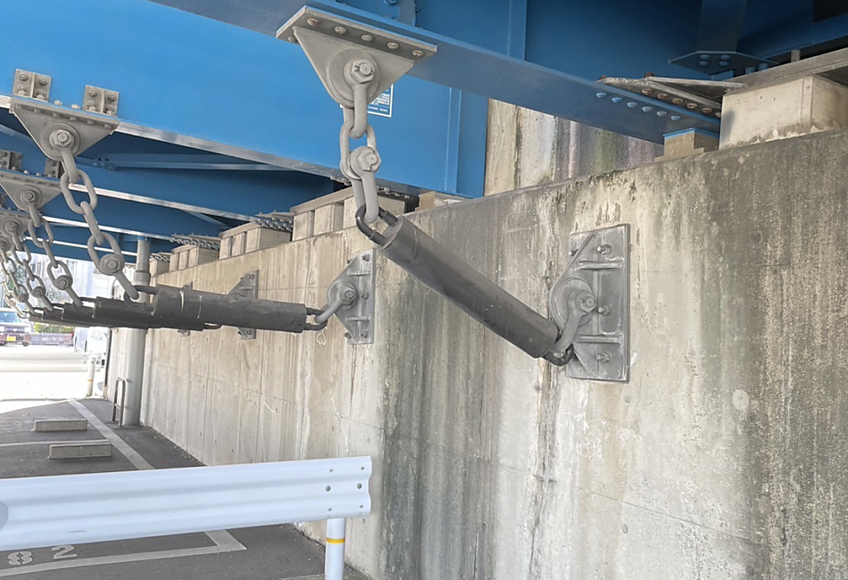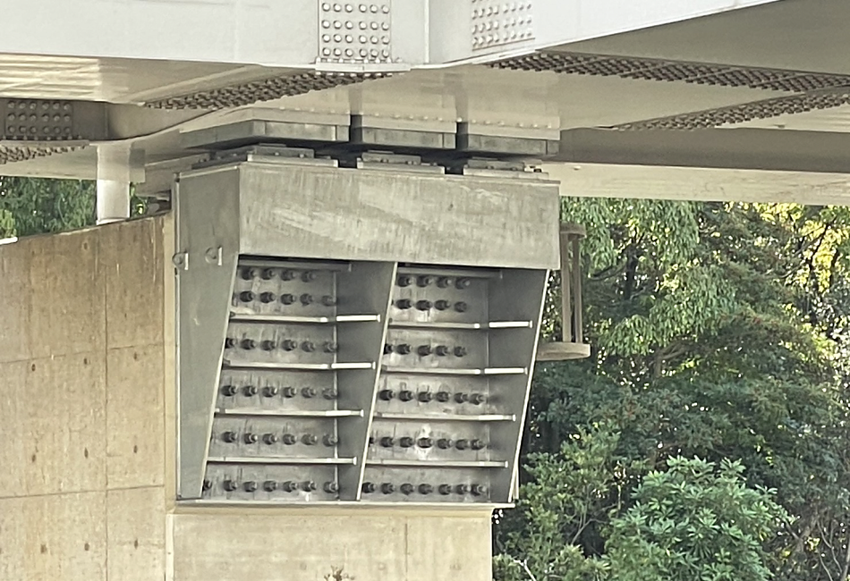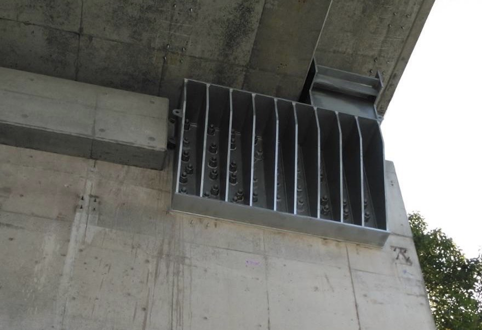 橋梁での耐震補強は落橋防止対策で橋台および橋桁部分に鋼製の落橋防止装置の設置やダンパー、チェーンやコンクリート製落橋防止または橋台の拡幅のためあと施工アンカー穿孔 アンカー定着を行う。主に接着系アンカーの注入方式で行うことが多い。最近では無機系アンカーを使うことが増えている。