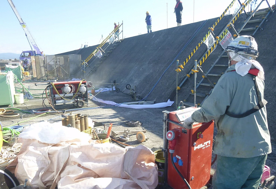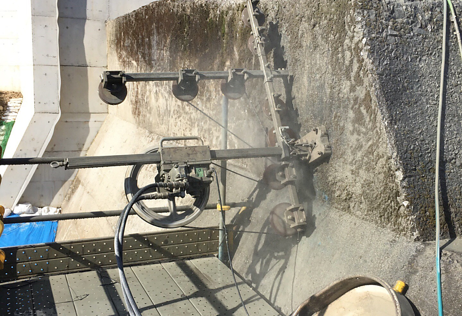 このワイヤーソーイングも湿式工法と乾式工法があり用途に合った施工方法を選択することができる。